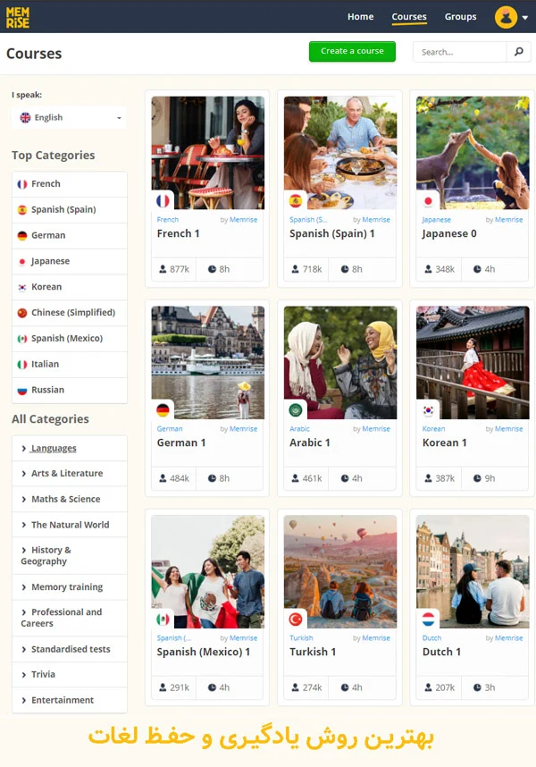 قبل از اینکه به مزایای خرید اکانت memrise pro بپردازیم، بهتر است نگاهی نوع خدمات این سرویس بیندازیم. ممرایز توسط استاد بزرگ حافظه Ed Cooke و یک متخصص مغز و اعصاب پرینستون به نام Greg Detre تاسیس شد و در سال 2013 در دسترس قرار گرفت که با آموزش عبارات و کلمات در زندگی واقعی، یادگیری زبان را سرگرم کننده کرده است. در حال حاضر 23 دوره زبان ایجاد شده توسط این برنامه به بیش از 40 میلیون کاربر آن ارائه می شود و دوره های اضافی ایجاد شده توسط کاربران به زبان های دیگر مانند آلبانیایی نیز در دسترس هستند.